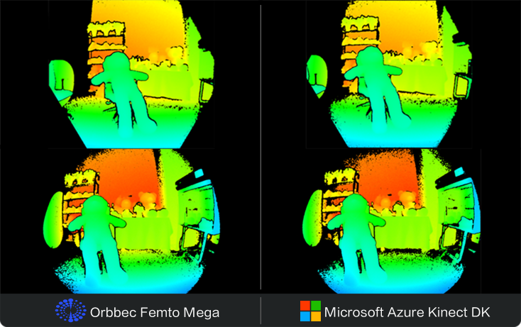 * 实际效果对比图:Femto Mega(左)VS Azure Kinect DK (右)