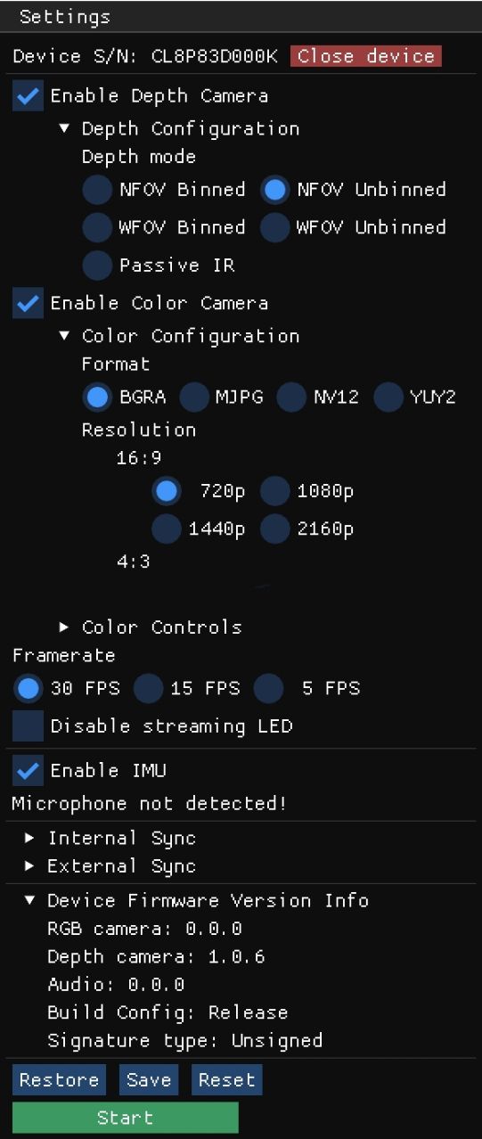 运行 k4aviewer.exe 启动应用程序。