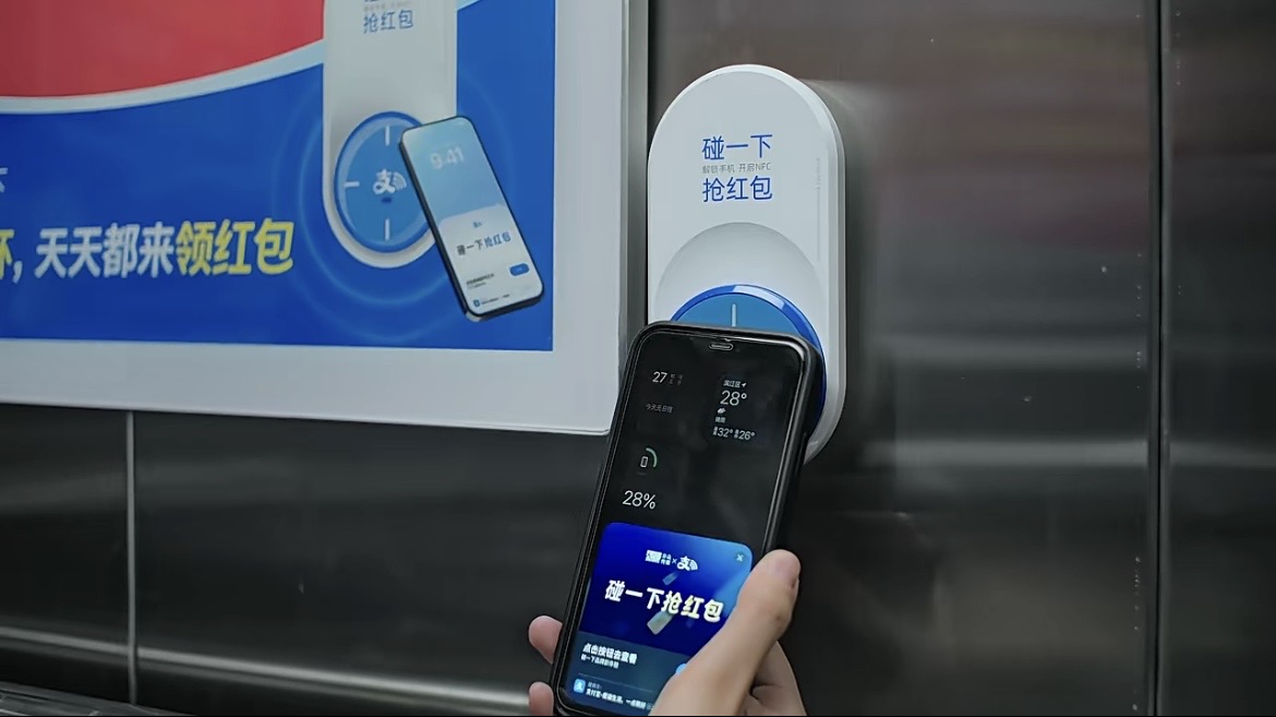 8月6日,支付宝与分众传媒宣布联合推出“碰一下抢红包”服务。作为创新交互方式,“支付宝碰一下”首次被引入至电梯场景,并已在全国20余个城市的电梯铺设。亚盈体育中光作为“支付宝碰一下”业务的核心供应商,为这一创新交互方式首次大规模落地电梯场景护航。