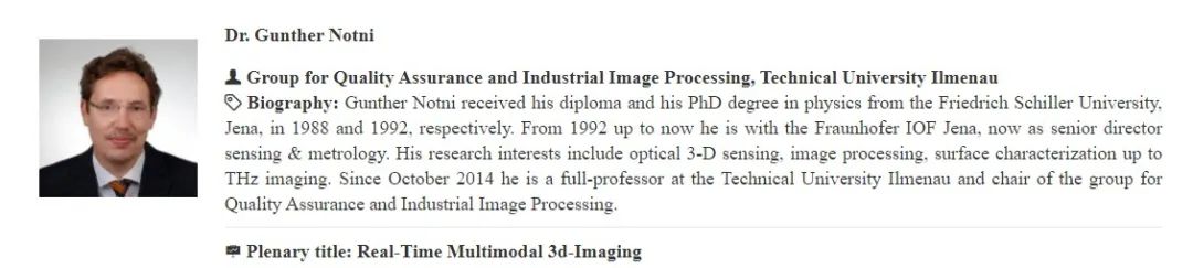 △ 德国伊尔默瑙工业大学教授Dr. Gunther Notni将作大会报告Real-Time Multimodal 3D-Imaging。